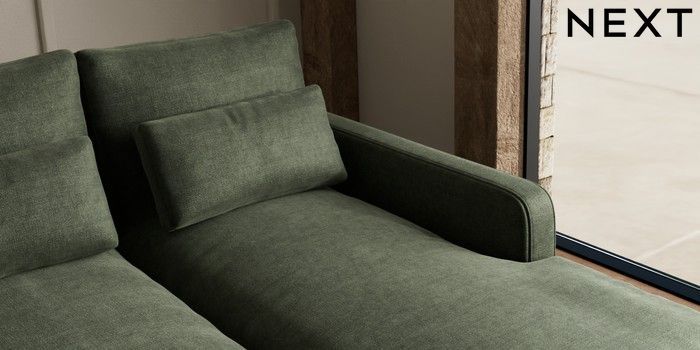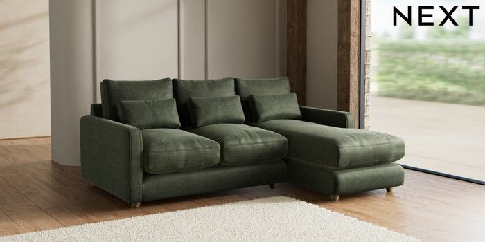 7.2.10 N Premium Farndon Grand Relaxed Sit Medium Sofa Chaise - Right Hand Luxe Chenille Mid Green Wooden Glide - Light | Made Click here to use our website with more accessibility support, for example screen readers