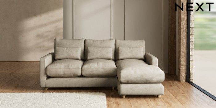 7.2.10 N Premium Farndon Grand Relaxed Sit Medium Sofa Chaise - Right Hand Monza Faux Leather Easy Clean Mink Brown Wooden Glide - Light | Made Click here to use our website with more accessibility support, for example screen readers