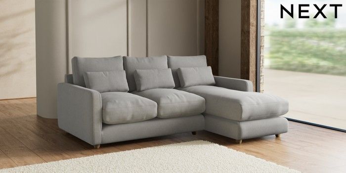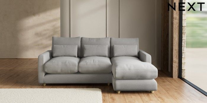 7.2.10 N Premium Farndon Grand Relaxed Sit Medium Sofa Chaise - Right Hand Natural Mix Light Grey Wooden Glide - Light | Made Click here to use our website with more accessibility support, for example screen readers