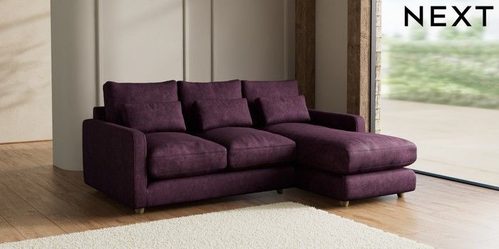 7.2.10 N Premium Farndon Grand Relaxed Sit Medium Sofa Chaise - Right Hand Plush Chenille Dark Plum Purple Wooden Glide - Light | Made Click here to use our website with more accessibility support, for example screen readers