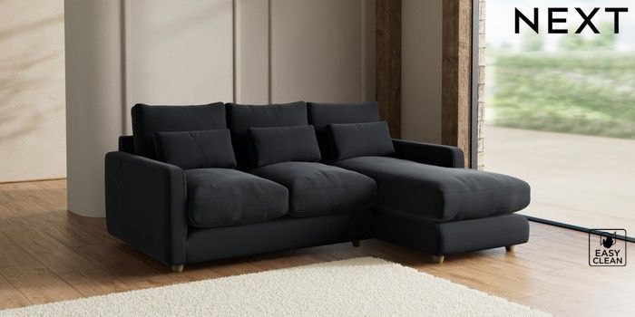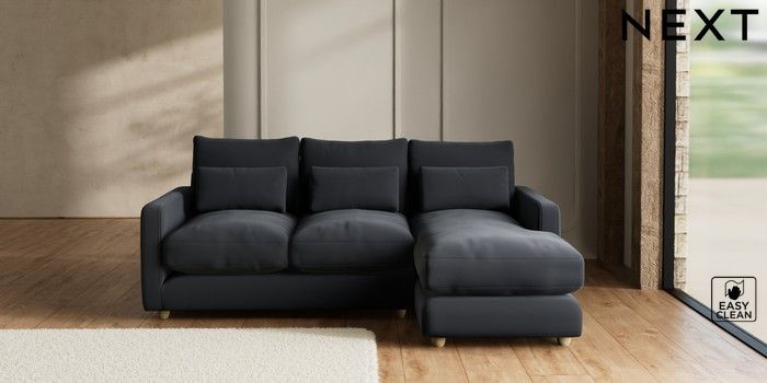 7.2.10 N Premium Farndon Grand Relaxed Sit Medium Sofa Chaise - Right Hand Plush Velvet Easy Clean Charcoal Grey Wooden Glide - Light | Made Click here to use our website with more accessibility support, for example screen readers