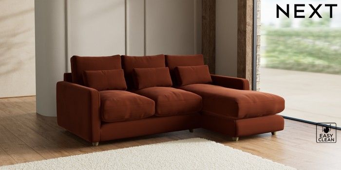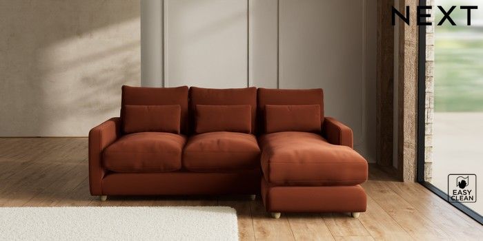 7.2.10 N Premium Farndon Grand Relaxed Sit Medium Sofa Chaise - Right Hand Plush Velvet Easy Clean Ginger Orange Wooden Glide - Light | Made Click here to use our website with more accessibility support, for example screen readers
