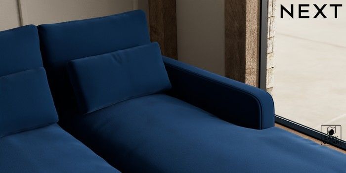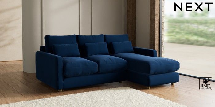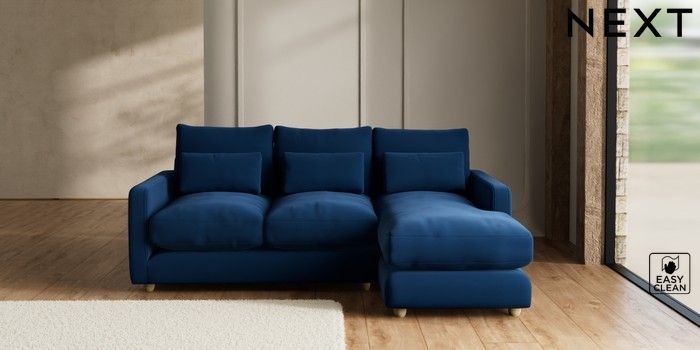 7.2.10 N Premium Farndon Grand Relaxed Sit Medium Sofa Chaise - Right Hand Plush Velvet Easy Clean Navy Blue Wooden Glide - Light | Made Click here to use our website with more accessibility support, for example screen readers
