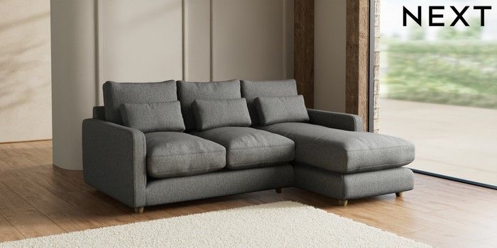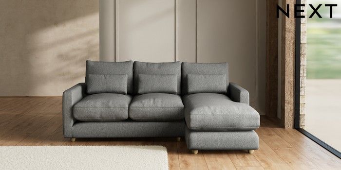 7.2.10 N Premium Farndon Grand Relaxed Sit Medium Sofa Chaise - Right Hand Tweedy Chenille Dark Grey Wooden Glide - Light | Made Click here to use our website with more accessibility support, for example screen readers
