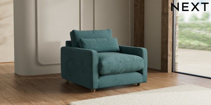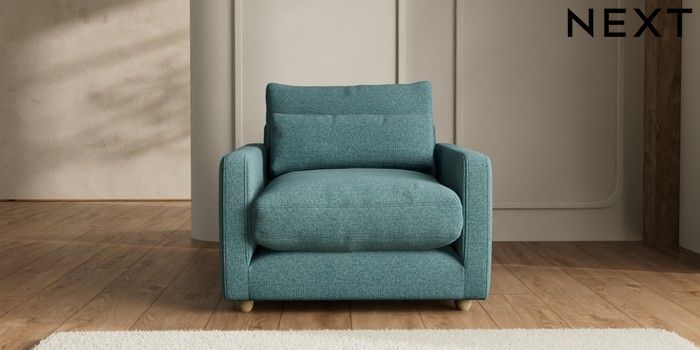 7.2.10 N Premium Farndon Grand Relaxed Sit Snuggle Chunky Chenille Mid Teal Green Wooden Glide - Light | Made Click here to use our website with more accessibility support, for example screen readers