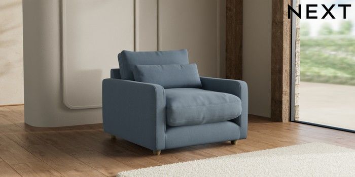 7.2.10 N Premium Farndon Grand Relaxed Sit Snuggle Relaxed Linen Look Mid Blue Wooden Glide - Light | Made Click here to use our website with more accessibility support, for example screen readers