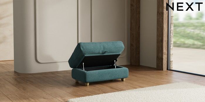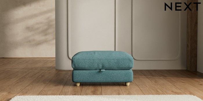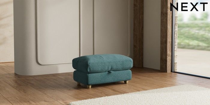 7.2.10 N Premium Farndon Grand Relaxed Sit Storage Footstool Chunky Chenille Mid Teal Green Wooden Glide - Light | Made Click here to use our website with more accessibility support, for example screen readers