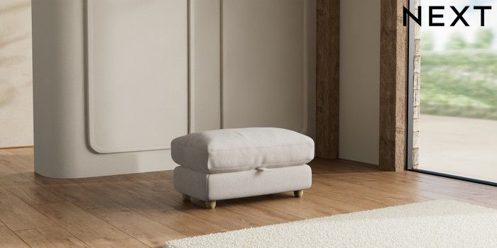 7.2.10 N Premium Farndon Grand Relaxed Sit Storage Footstool Chunky Chenille Oyster Wooden Glide - Light | Made Click here to use our website with more accessibility support, for example screen readers