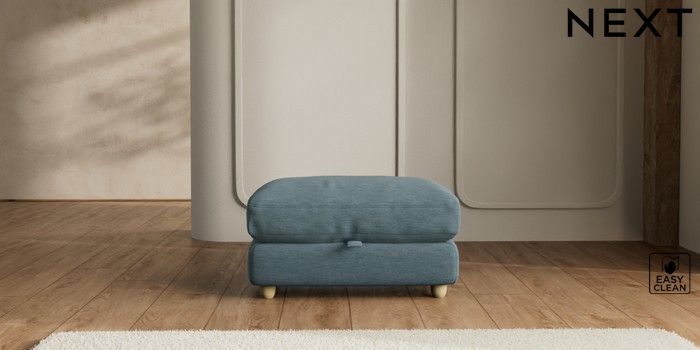 7.2.10 N Premium Farndon Grand Relaxed Sit Storage Footstool Fine Chenille Easy Clean Mid Blue Wooden Glide - Light | Made Click here to use our website with more accessibility support, for example screen readers