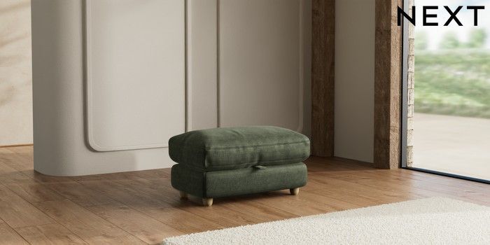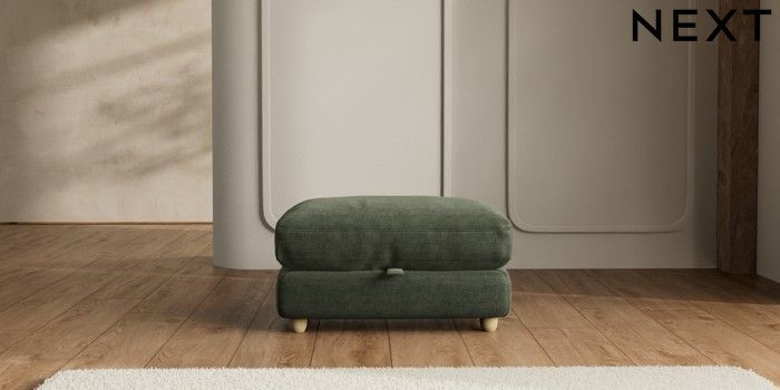 7.2.10 N Premium Farndon Grand Relaxed Sit Storage Footstool Luxe Chenille Mid Green Wooden Glide - Light | Made Click here to use our website with more accessibility support, for example screen readers