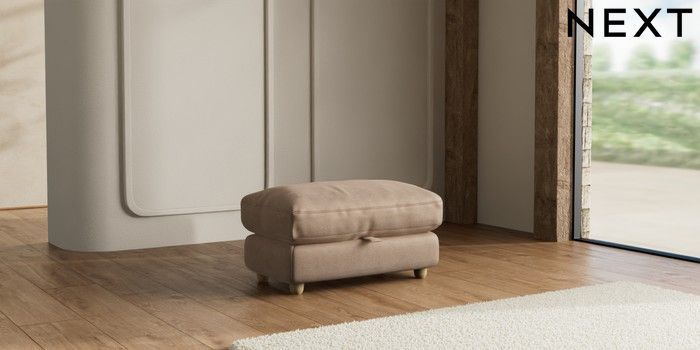 7.2.10 N Premium Farndon Grand Relaxed Sit Storage Footstool Luxe Chenille Mid Natural Wooden Glide - Light | Made Click here to use our website with more accessibility support, for example screen readers