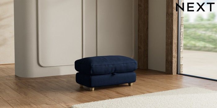 7.2.10 N Premium Farndon Grand Relaxed Sit Storage Footstool Luxe Chenille Navy Blue Wooden Glide - Light | Made Click here to use our website with more accessibility support, for example screen readers