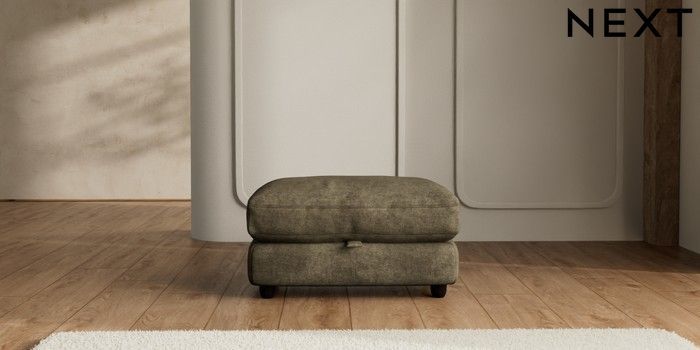 7.2.10 N Premium Farndon Grand Relaxed Sit Storage Footstool Plush Chenille Moss Green Wooden Glide - Dark | Made Click here to use our website with more accessibility support, for example screen readers