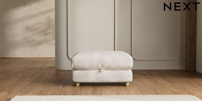 7.2.10 N Premium Farndon Grand Relaxed Sit Storage Footstool Plush Chenille Oyster Wooden Glide - Light | Made Click here to use our website with more accessibility support, for example screen readers