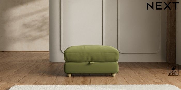 7.2.10 N Premium Farndon Grand Relaxed Sit Storage Footstool Plush Velvet Easy Clean Mid Olive Green Wooden Glide - Light | Made Click here to use our website with more accessibility support, for example screen readers