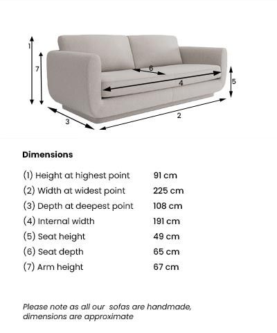 Dimensions:W225 x H91 x D108cm