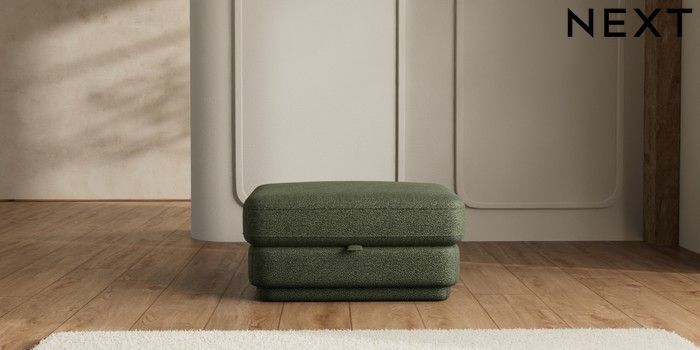 7.2.10 N Premium Pia Storage Footstool Boucle Chenille Dark Moss Green | Made Click here to use our website with more accessibility support, for example screen readers