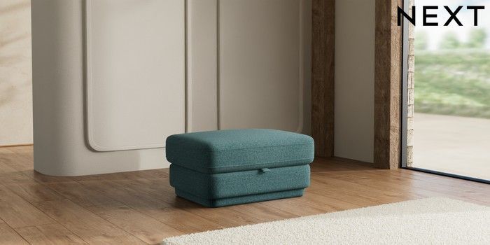 7.2.10 N Premium Pia Storage Footstool Chunky Chenille Mid Teal Green | Made Click here to use our website with more accessibility support, for example screen readers
