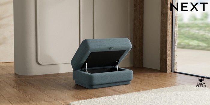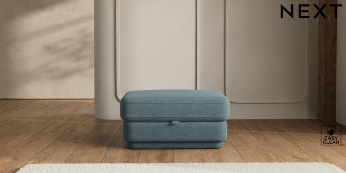 7.2.10 N Premium Pia Storage Footstool Fine Chenille Easy Clean Mid Blue | Made Click here to use our website with more accessibility support, for example screen readers