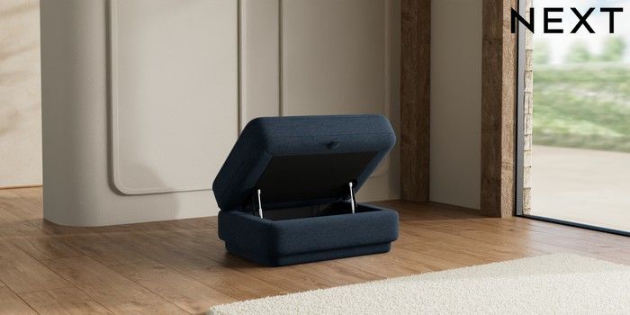 7.2.10 N Premium Pia Storage Footstool Ripple Chenille Dark Blue | Made Click here to use our website with more accessibility support, for example screen readers