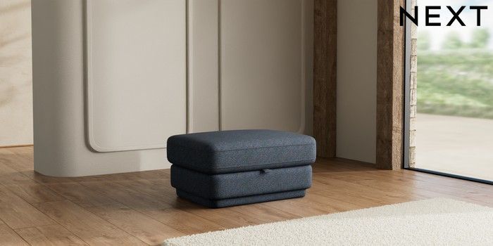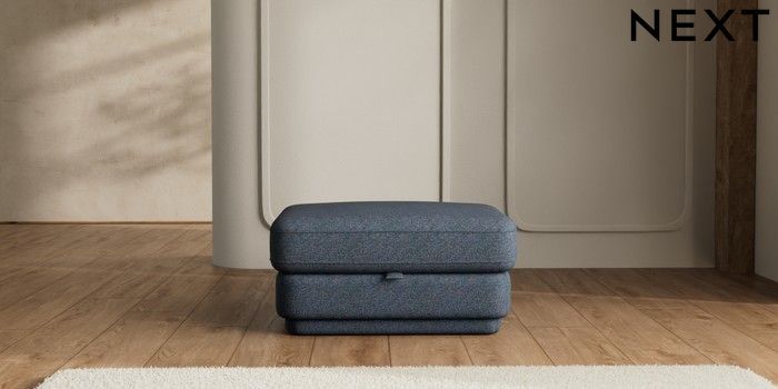 7.2.10 N Premium Pia Storage Footstool Tweedy Chenille Navy Blue | Made Click here to use our website with more accessibility support, for example screen readers