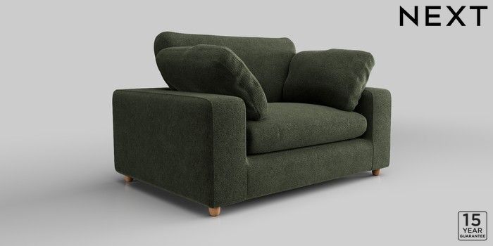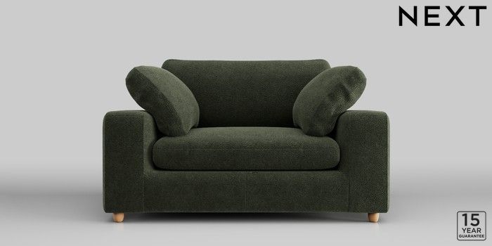 7.2.10 N Premium The Snuggle Grand 2 Seater Small Sofa Boucle Chenille Dark Moss Green Wooden Glide - Light | Made Click here to use our website with more accessibility support, for example screen readers