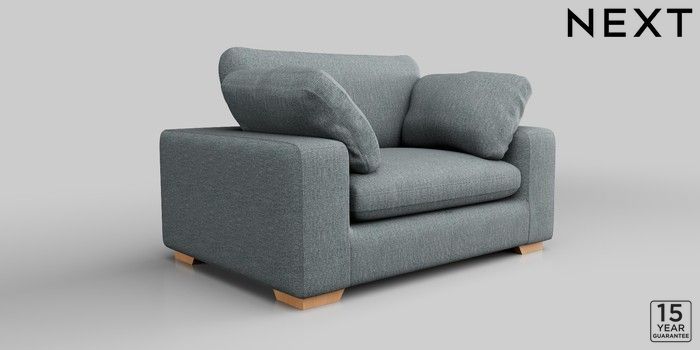 7.2.10 N Premium The Snuggle Grand 2 Seater Small Sofa Chunky Weave Mid Blue Large Square Angle - Light | Made Click here to use our website with more accessibility support, for example screen readers