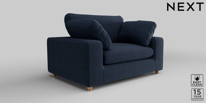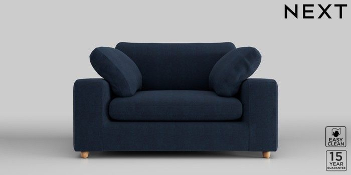 7.2.10 N Premium The Snuggle Grand 2 Seater Small Sofa Fine Chenille Easy Clean Dark Navy Blue Wooden Glide - Light | Made Click here to use our website with more accessibility support, for example screen readers
