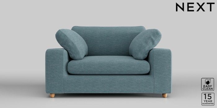 7.2.10 N Premium The Snuggle Grand 2 Seater Small Sofa Fine Chenille Easy Clean Mid Blue Wooden Glide - Light | Made Click here to use our website with more accessibility support, for example screen readers