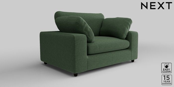 7.2.10 N Premium The Snuggle Grand 2 Seater Small Sofa Fine Chenille Easy Clean Mid Khaki Green Wooden Glide - Dark | Made Click here to use our website with more accessibility support, for example screen readers