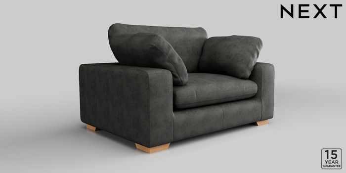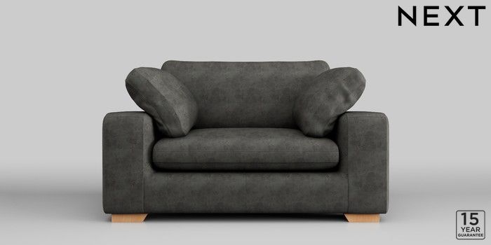 7.2.10 N Premium The Snuggle Grand 2 Seater Small Sofa Monza Faux Leather Easy Clean Dark Grey Large Square Angle - Light | Made Click here to use our website with more accessibility support, for example screen readers