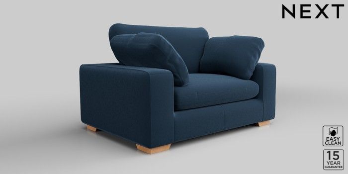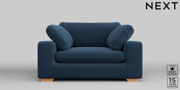 7.2.10 N Premium The Snuggle Grand 2 Seater Small Sofa Plush Velvet Easy Clean Airforce Blue Large Square Angle - Light | Made Click here to use our website with more accessibility support, for example screen readers