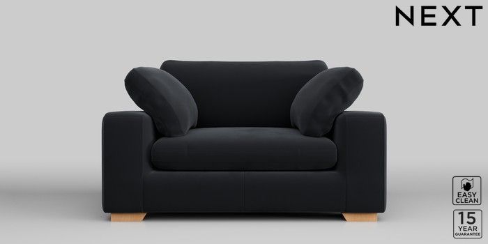 7.2.10 N Premium The Snuggle Grand 2 Seater Small Sofa Plush Velvet Easy Clean Charcoal Grey Large Square Angle - Light | Made Click here to use our website with more accessibility support, for example screen readers