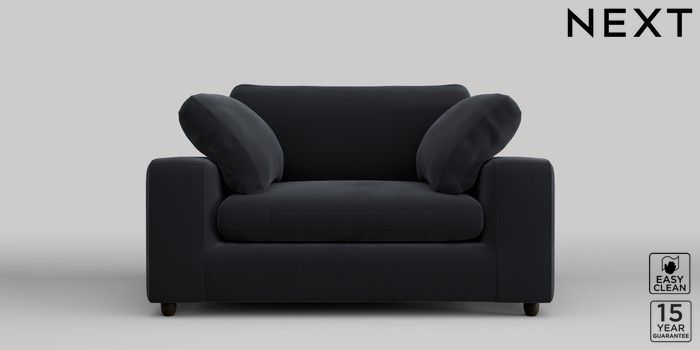 7.2.10 N Premium The Snuggle Grand 2 Seater Small Sofa Plush Velvet Easy Clean Charcoal Grey Wooden Glide - Dark | Made Click here to use our website with more accessibility support, for example screen readers