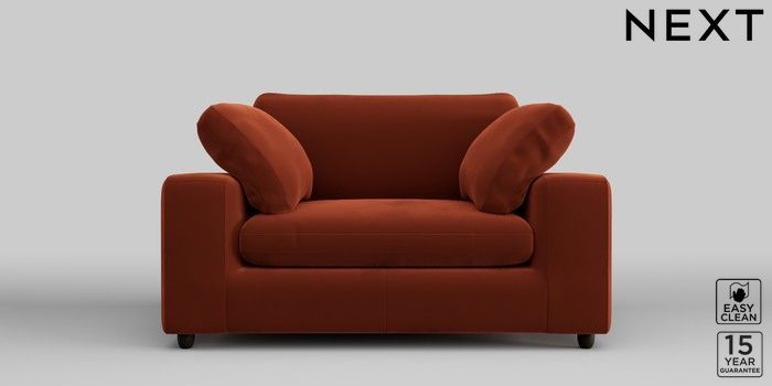 7.2.10 N Premium The Snuggle Grand 2 Seater Small Sofa Plush Velvet Easy Clean Ginger Orange Wooden Glide - Dark | Made Click here to use our website with more accessibility support, for example screen readers
