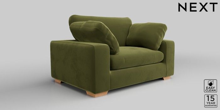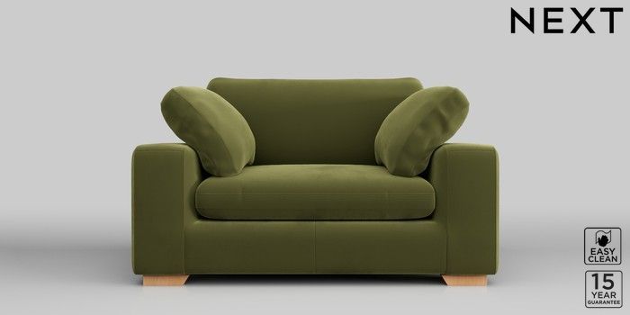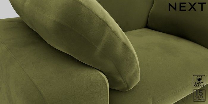 7.2.10 N Premium The Snuggle Grand 2 Seater Small Sofa Plush Velvet Easy Clean Mid Olive Green Large Square Angle - Light | Made Click here to use our website with more accessibility support, for example screen readers