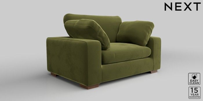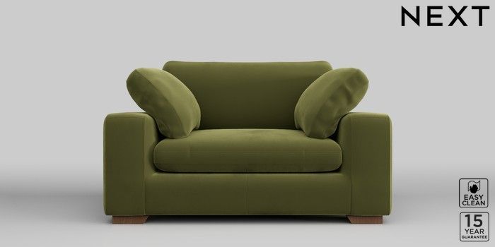7.2.10 N Premium The Snuggle Grand 2 Seater Small Sofa Plush Velvet Easy Clean Mid Olive Green Large Square Angle - Mid | Made Click here to use our website with more accessibility support, for example screen readers