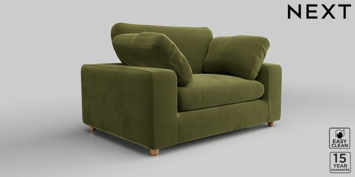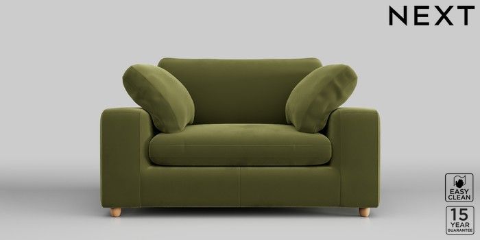 7.2.10 N Premium The Snuggle Grand 2 Seater Small Sofa Plush Velvet Easy Clean Mid Olive Green Wooden Glide - Light | Made Click here to use our website with more accessibility support, for example screen readers