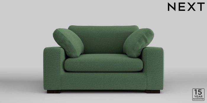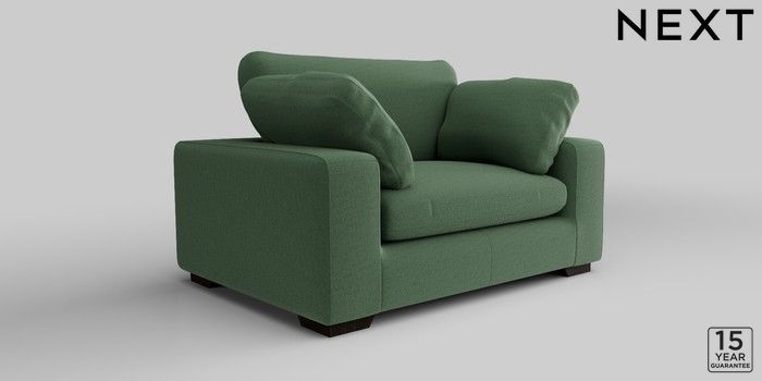 7.2.10 N Premium The Snuggle Grand 2 Seater Small Sofa Relaxed Linen Look Dark Green Large Square Angle - Dark | Made Click here to use our website with more accessibility support, for example screen readers