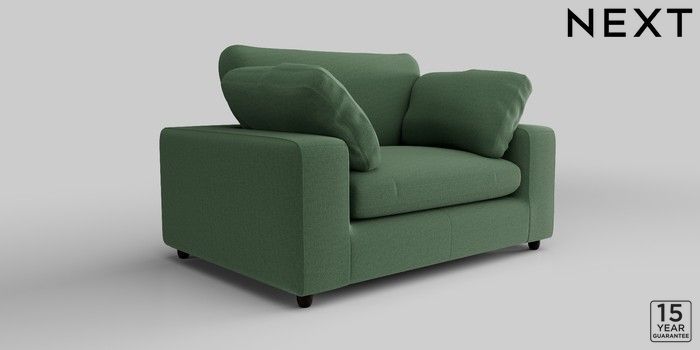 7.2.10 N Premium The Snuggle Grand 2 Seater Small Sofa Relaxed Linen Look Dark Green Wooden Glide - Dark | Made Click here to use our website with more accessibility support, for example screen readers