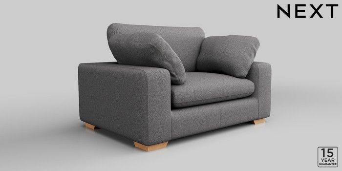 7.2.10 N Premium The Snuggle Grand 2 Seater Small Sofa Studio Chenille Mid Grey Large Square Angle - Light | Made Click here to use our website with more accessibility support, for example screen readers