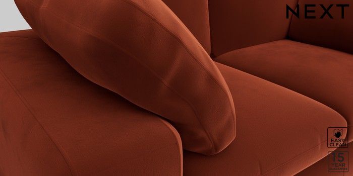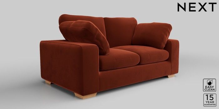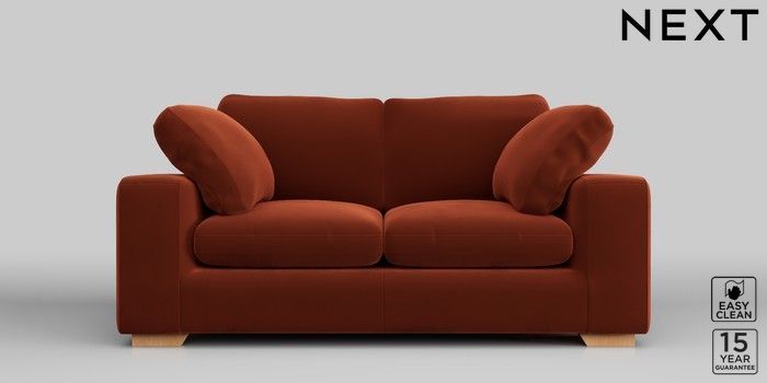 7.2.10 N Premium The Snuggle Grand 2 Seater Sofa Plush Velvet Easy Clean Ginger Orange Large Square Angle - Light | Made Click here to use our website with more accessibility support, for example screen readers