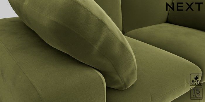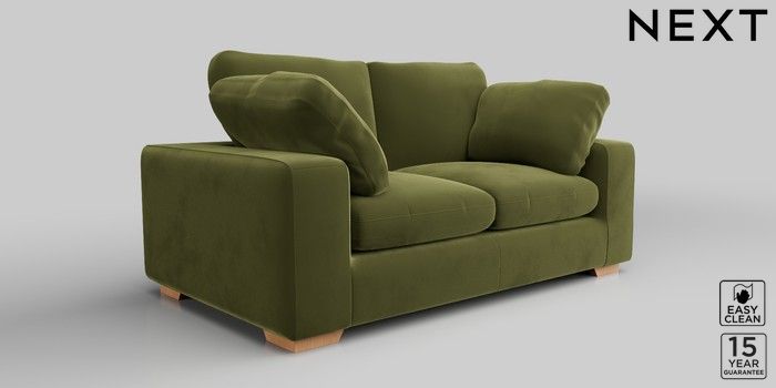 7.2.10 N Premium The Snuggle Grand 2 Seater Sofa Plush Velvet Easy Clean Mid Olive Green Large Square Angle - Light | Made Click here to use our website with more accessibility support, for example screen readers