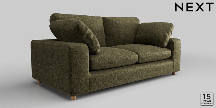 7.2.10 N Premium The Snuggle Grand 3 Seater Sofa Plush Chenille Moss Green Wooden Glide - Light | Made Click here to use our website with more accessibility support, for example screen readers