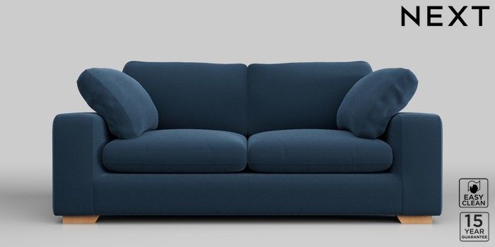 7.2.10 N Premium The Snuggle Grand 3 Seater Sofa Plush Velvet Easy Clean Airforce Blue Large Square Angle - Light | Made Click here to use our website with more accessibility support, for example screen readers