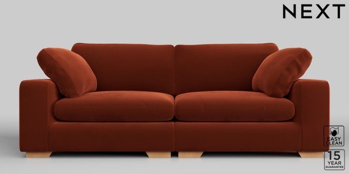 7.2.10 N Premium The Snuggle Grand 4 Seater Large Sofa Plush Velvet Easy Clean Ginger Orange Large Square Angle - Light | Made Click here to use our website with more accessibility support, for example screen readers