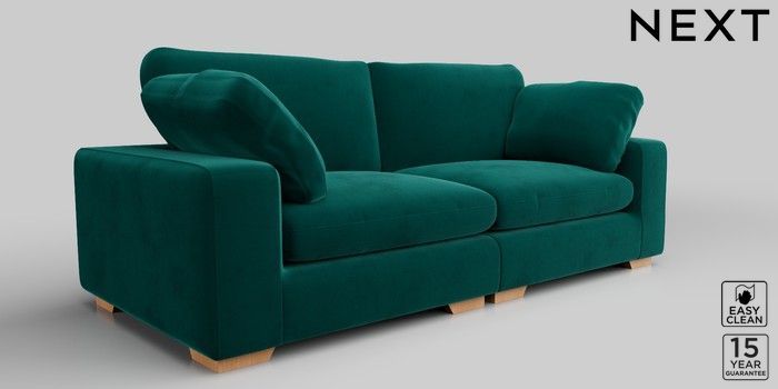 7.2.10 N Premium The Snuggle Grand 4 Seater Large Sofa Plush Velvet Easy Clean Juniper Green Large Square Angle - Light | Made Click here to use our website with more accessibility support, for example screen readers