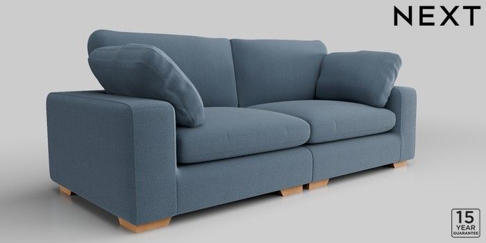 7.2.10 N Premium The Snuggle Grand 4 Seater Large Sofa Relaxed Linen Look Mid Blue Large Square Angle - Light | Made Click here to use our website with more accessibility support, for example screen readers