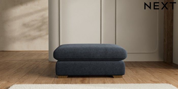 7.2.10 N Premium The Snuggle Grand Extra Large Footstool Boucle Chenille Dark Slate Blue Square Angle - Mid | Made Click here to use our website with more accessibility support, for example screen readers