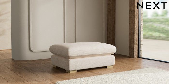 7.2.10 N Premium The Snuggle Grand Extra Large Footstool Boucle Chenille Oyster Square Angle - Light | Made Click here to use our website with more accessibility support, for example screen readers